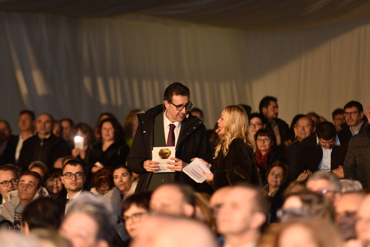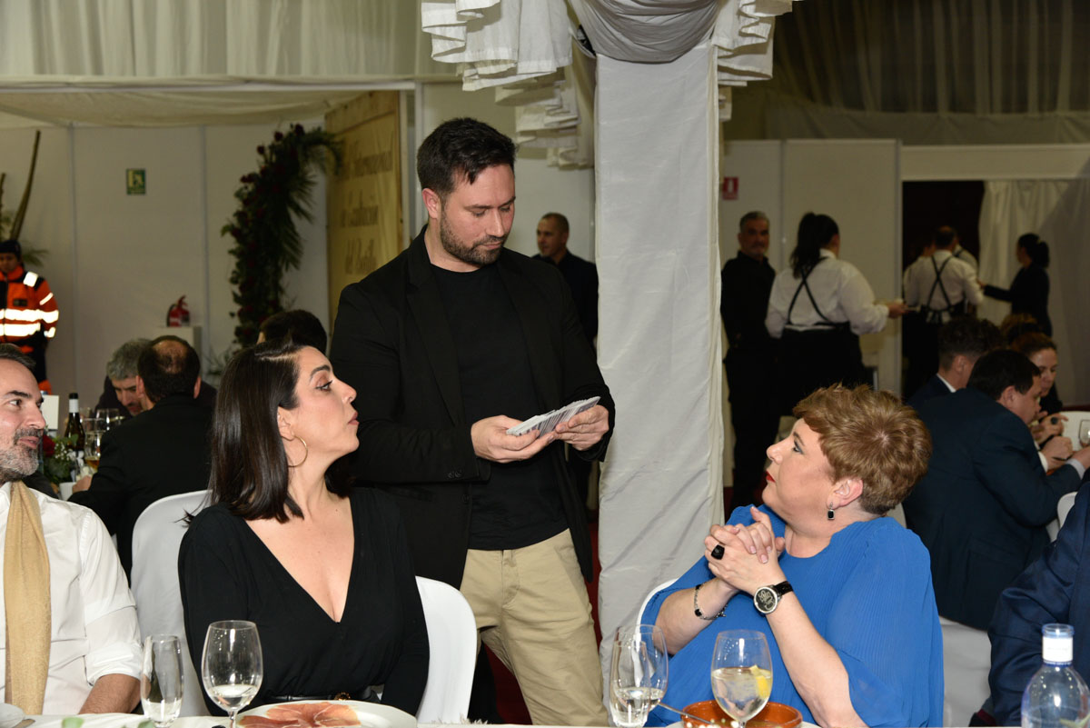 La gala, conducida por Héctor Keudell y María de Miguel, comenzó fuera del pabellón, mirando hacia otro de los epicentros del fin de semana: la Feria Agroalimentaria. La primera escena fue una conexión en vídeo desde el Bembibre Arena, una manera de poner en primer plano el producto y la despensa de productos de muy variados sectores antes de que la celebración se trasladara, ya con todo su ceremonial, a su recinto natural, el pabellón Manuel Marqués “Patarita”.