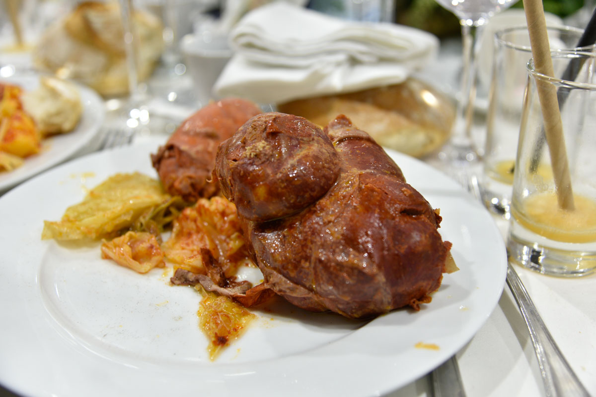 El botillo no solo se come, también se vive. Yo le definiría como un arquetipo de la cocina de las emociones. El botillo socializa, reúne, hace florecer afectos, risas, recuerdos, vivencias…vida en definitiva. El botillo encarna esa memoria que habéis sabido salvaguardar de generación en generación imponiéndola frente a gustos y tendencias de una globalización que no hace sino vulgarizarlo todo. Me da mucha satisfacción pensar que serán vuestras manos y las técnicas ancestrales heredadas de vuestros antepasados y no la inteligencia artificial las que nos permitirán seguir disfrutando de vuestro excelso botillo. Fuego, humo, barro para la cocción, producto vinculado a vuestra tierra, identidad territorial, historia, tradición, cultura con mayúsculas porque rara vez se puede acumular tanto conocimiento como en una creación gastronómica…todo eso representa vuestro botillo al que os animo a defender con el orgullo y la vehemencia con que lo estáis haciendo.