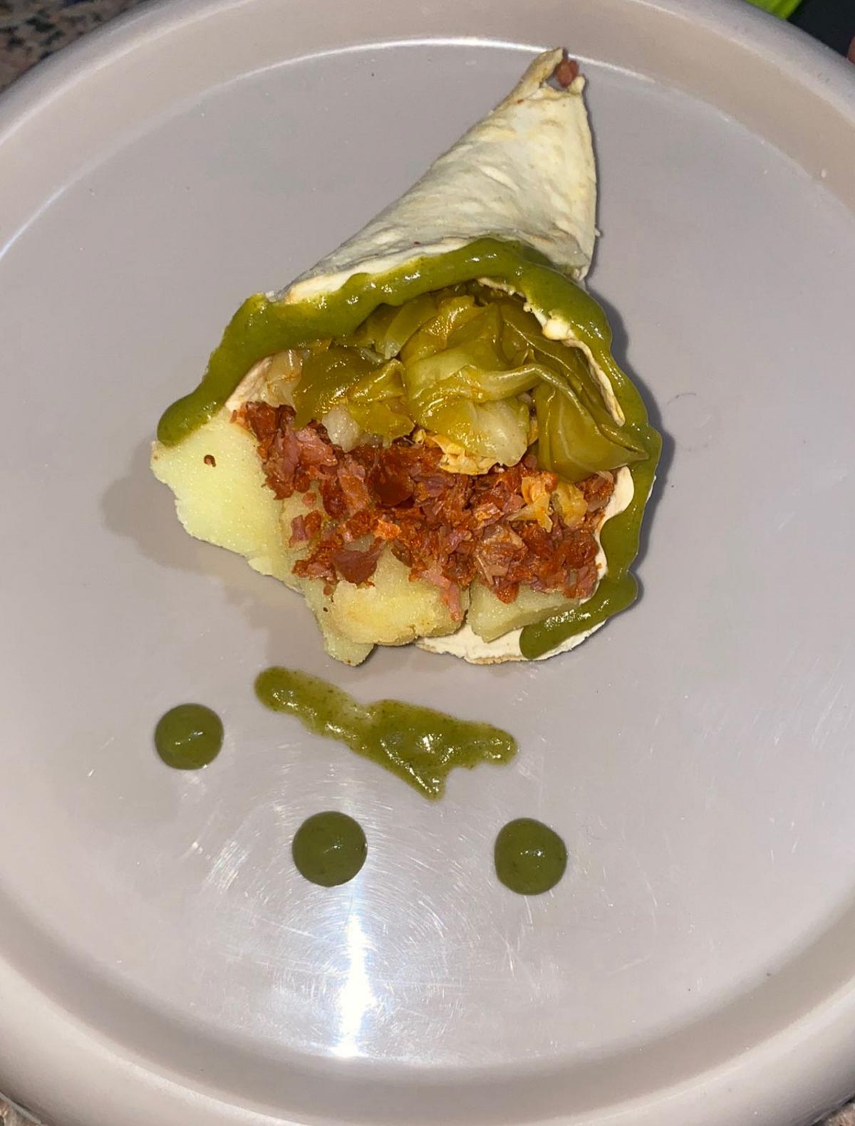 “Flor de botillo con crujiente de repollo”